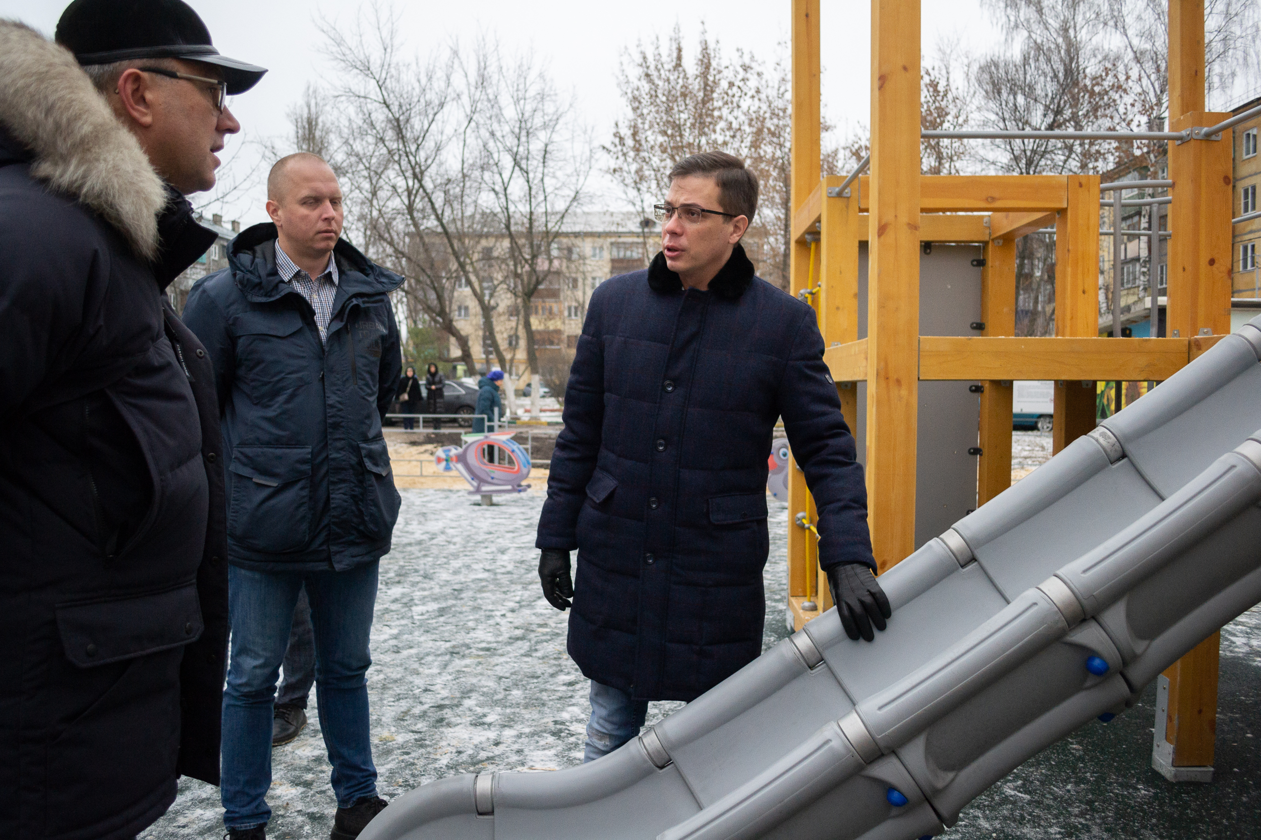 По итогам инспекции Юрий Шалабаев дал поручение Александру Кулагину продумать вопрос об устройстве подходящего покрытия возле новой площадки и предусмотреть навес, защищающий игровые элементы от осадков.