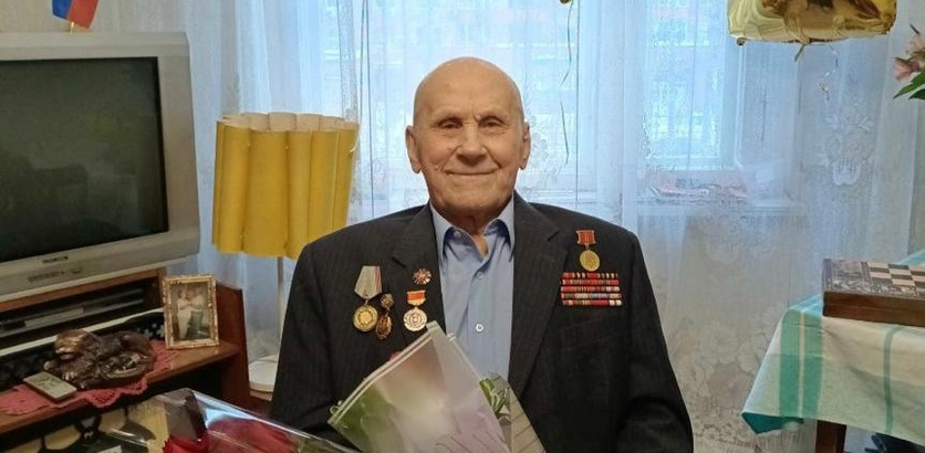 В праздничный день представители администрации района вручили ветерану цветы и памятный подарок.