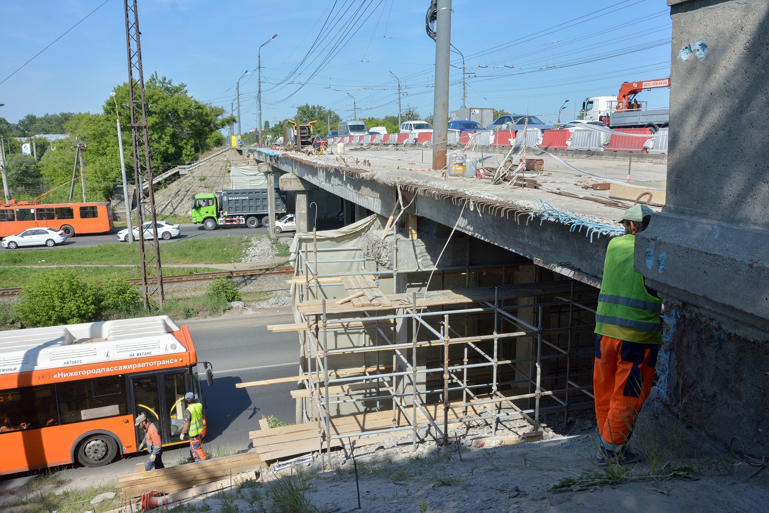 Заместитель генерального директора МКУ «ГУММиД» Илья Беба рассказал, что ремонт путепровода очень сложный, так как он введен в эксплуатацию в 1963 году, и до этого года проводились только косметические ремонты. «Капитальный ремонт данного путепровода будет проводиться в три этапа, которые включают проведение работ на пролетных строениях: демонтаж плиты проезжей части, барьерных и перильных ограждений, перенос контактной сети. Сейчас работы выполняются под пролетными строениями. У нас пять пролетов на каждом этапе, нужно поднять каждый пролет домкратами, смонтировать опорные части и потом пролеты опустить, параллельно отремонтируем балки пролетных строений, конусы, ригели, лестничные сходы и опоры. Отмечу, что под пролетами проходит железная дорога и проезжая часть, поэтому стараемся работать синхронно на всех направлениях», - заявил он.