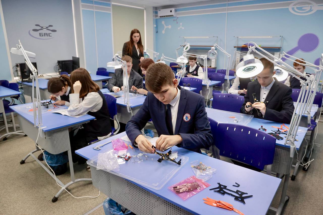 Руководитель кружка Татьяна Кудрявцева рассказала, что занятия проходят три раза в неделю в группах. «В одном кабинете мы изучаем теорию – устройство беспилотников, программирование, технику безопасности, работу с 3D-принтерами. В другом – учимся паять, собирать и ремонтировать дроны. А в спортивном зале проводятся тренировки, где школьники осваивают навыки FPV-пилотирования. Мы гордимся их успехами: уже есть победители и призёры региональных соревнований», – поделилась она.