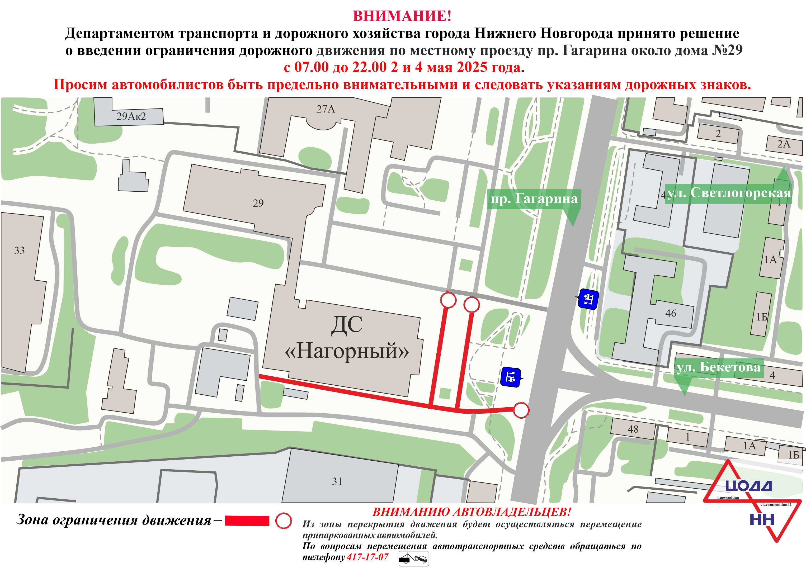 Кроме того, 2 и 4 мая с 07.00 до 20.00 вводятся ограничения движения в районе дома №29 по проспекту Гагарина.