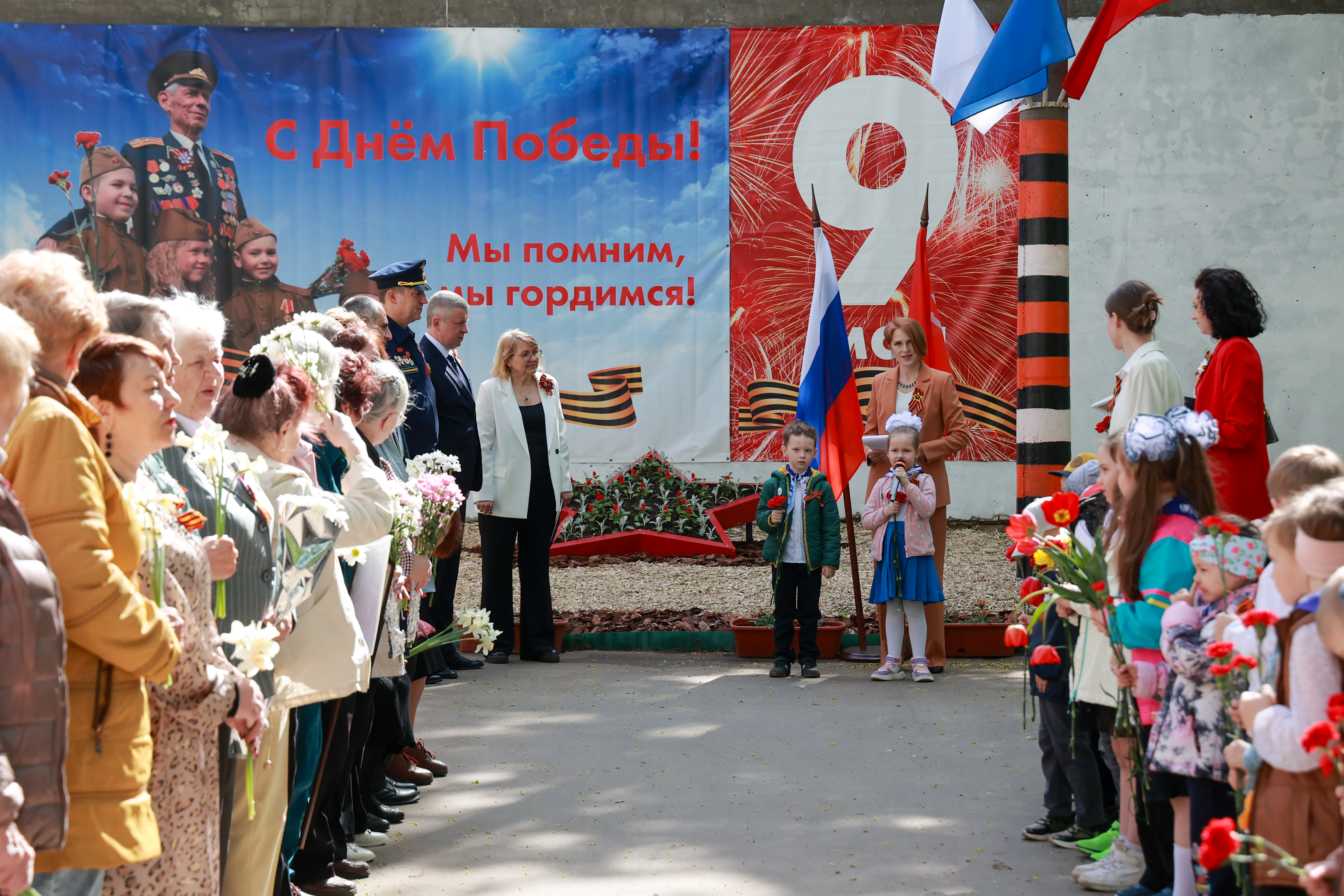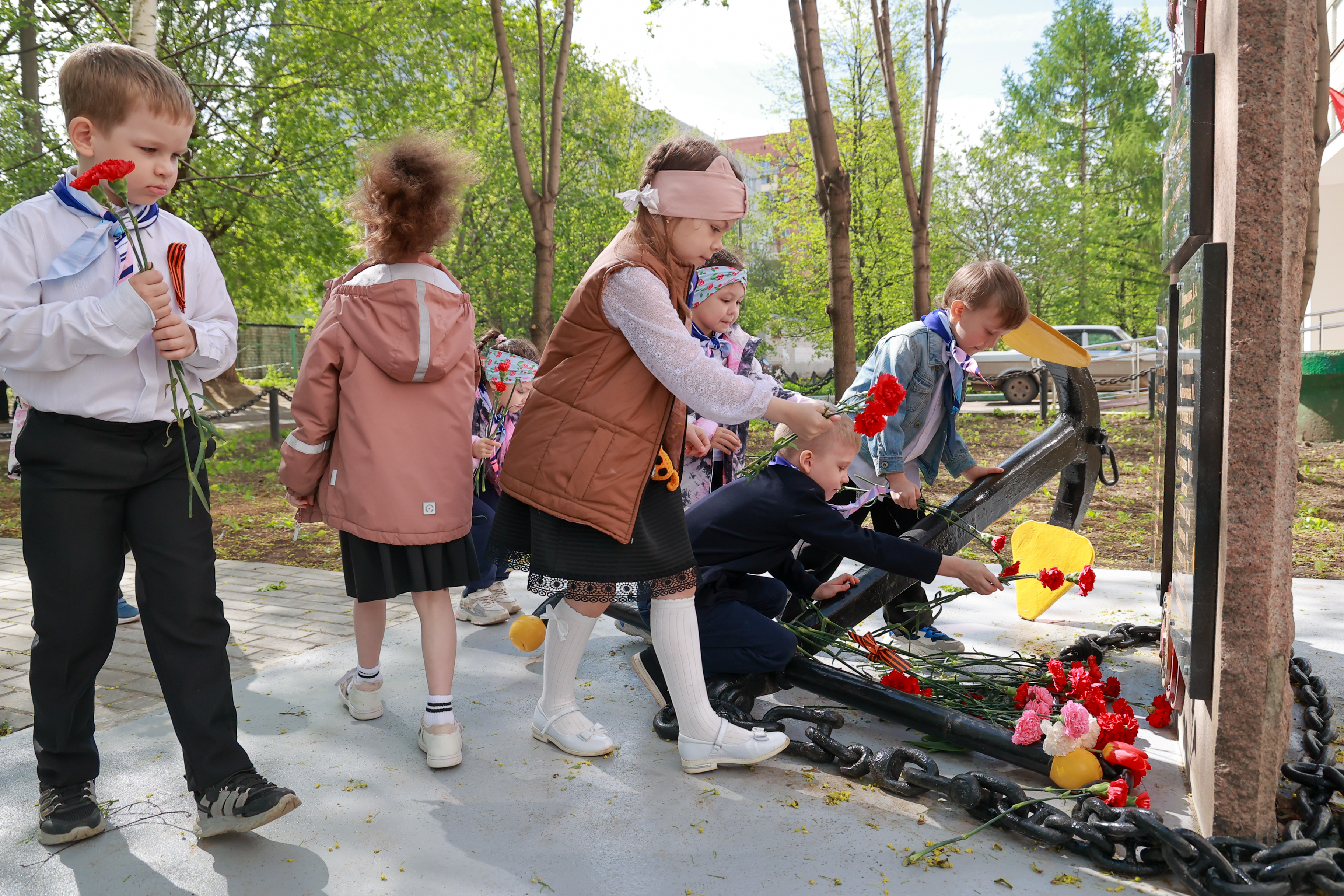 Посте торжественного митинга глава района Сергей Лукоянов вместе с ветеранами и воспитанниками детского сада возложили цветы к памятнику, погибшим работникам РЭБ флота имени 25 Октября в Великой Отечественной войне, который располагается рядом с дошкольным образовательным учреждением на ул. Каширская, 58.