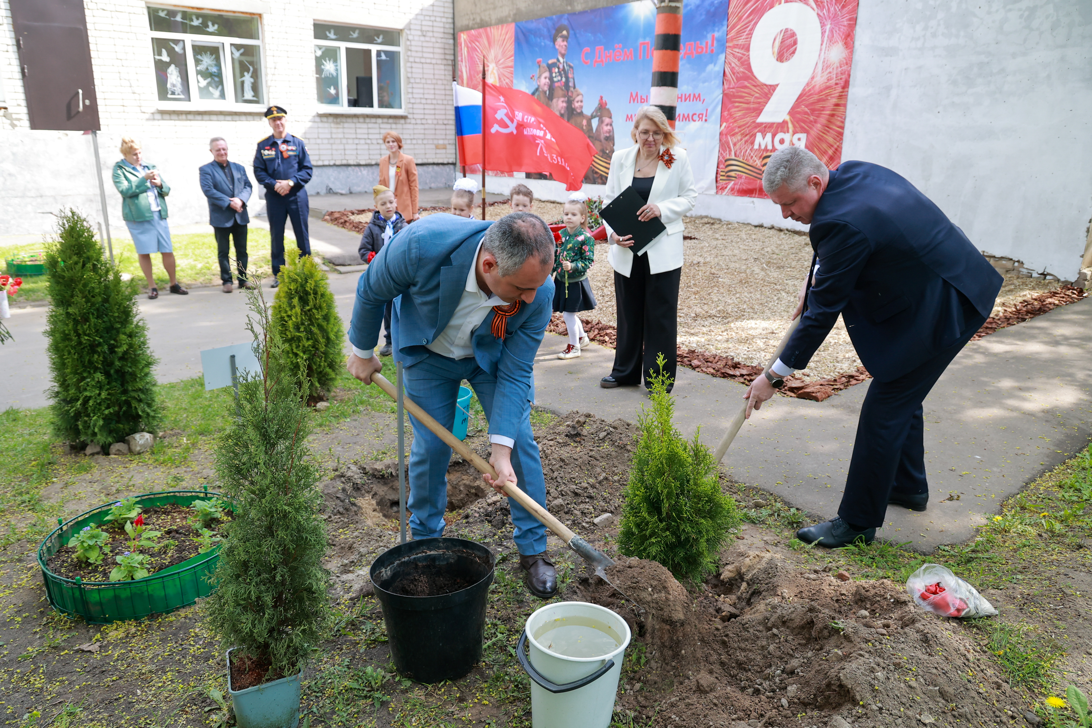 На торжественный митинг, посвященный открытию Аллеи Памяти, пришли ветераны Великой Отечественной войны, воспитанники и педагоги детского сада. Мероприятие началось с гимна РФ, торжественного выноса флага России и знамени Победы. Затем глава района Сергей Лукоянов и депутат Законодательного собрания Нижегородской области Соломон Апоян вместе с детьми посадили на алее туи. «С каждым годом Аллея Памяти будет пополняться портретами прабабушек и прадедушек ребят, которые впервые придут в детский сад. И каждый раз, идя в дошкольное учреждение, дети и их родители будут вспоминать о своих родственниках, героически защищавших Отчизну, чтобы они могли свободно расти и жить в родной стране», – сказал глава района, поздравив присутствующих с наступающим 9 Мая.