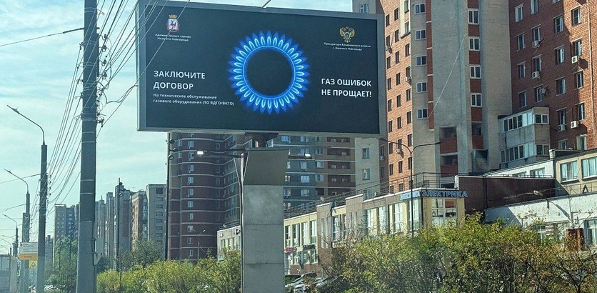 16 электронных экранов в Канавинском районе транслируют социальную рекламу, посвященную правилам безопасного использования газового оборудования, и напоминают жителям о необходимости заключения договоров на его обслуживание.