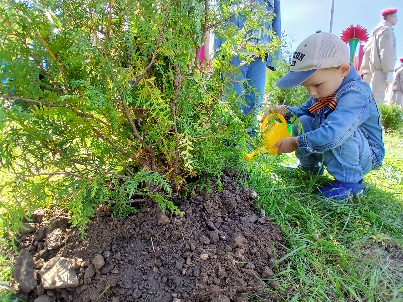 На мероприятии воспитанники детского сада и гости почтили память героев минутой молчания и возложили цветы к Стелле «Звезда Победы».