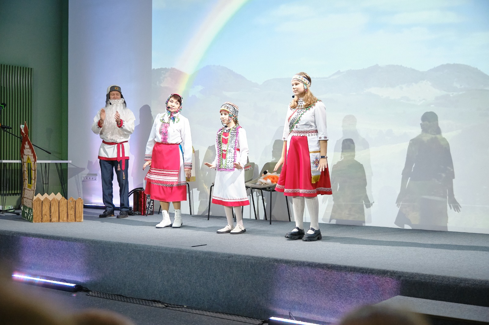Кроме того, дети посмотрели анимационный мультфильм «Купно за едино», в создании которого принимали участие более 200 ребят разных возрастов, а также познакомились с известными персонажами из национальных сказок, среди них были русский медведь-музыкант, татарский фольклорный персонаж Шурале и чувашская лиса-плясунья. Во время фестиваля школьники отгадывали русские народные загадки и попробовали себя в искусстве рисования песком.
