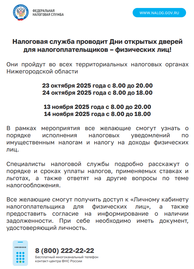 Межрайонная ИФНС России №22 по Нижегородской области информирует о проведении семинаров для налогоплательщиков