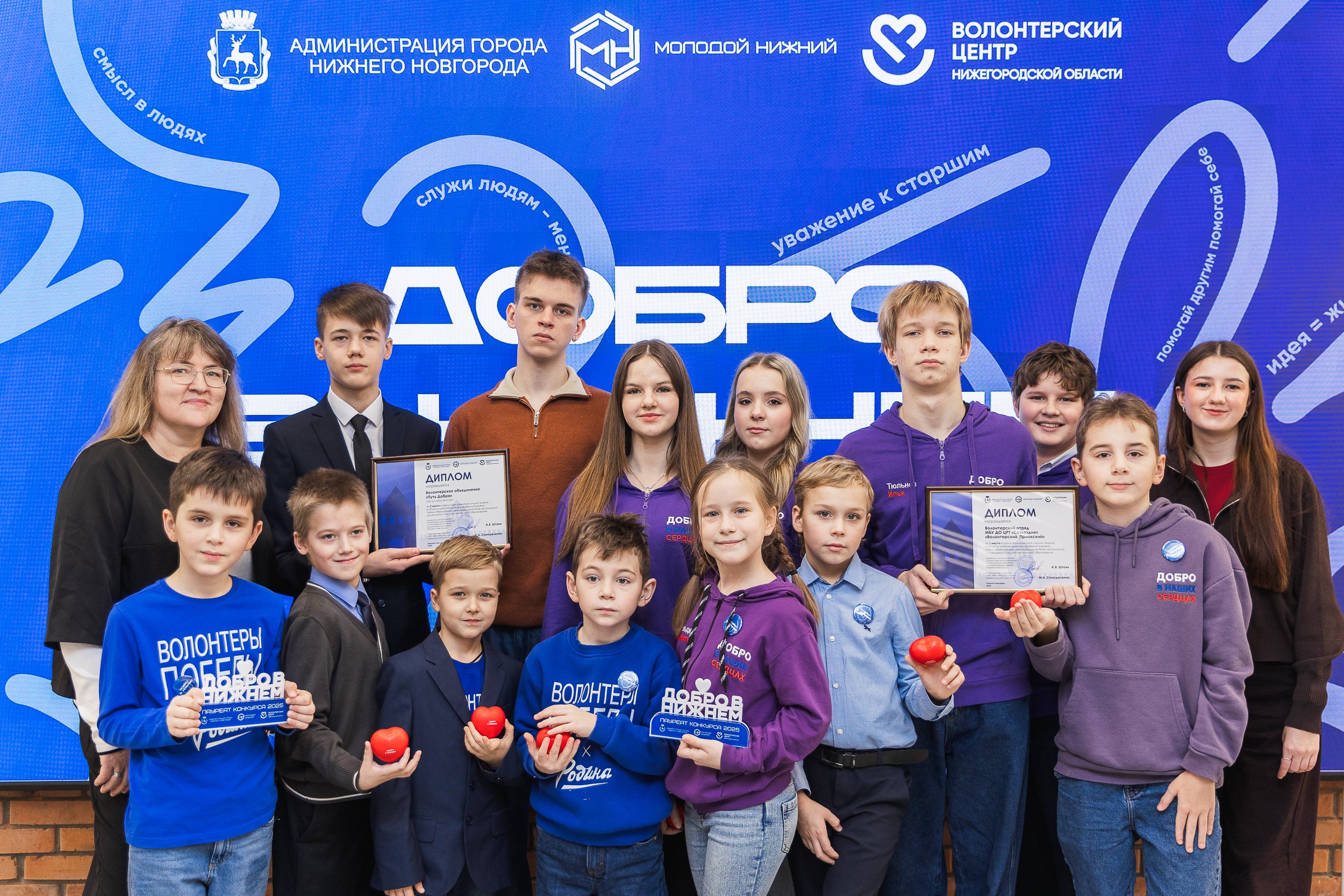 В 2025 году конкурс «Добро в Нижнем» проводился по 8 номинациям, всего на конкурс была подана 71 заявка. Победителями и призерами городского конкурса лучших практик в области добровольчества «Добро в Нижнем» стали: