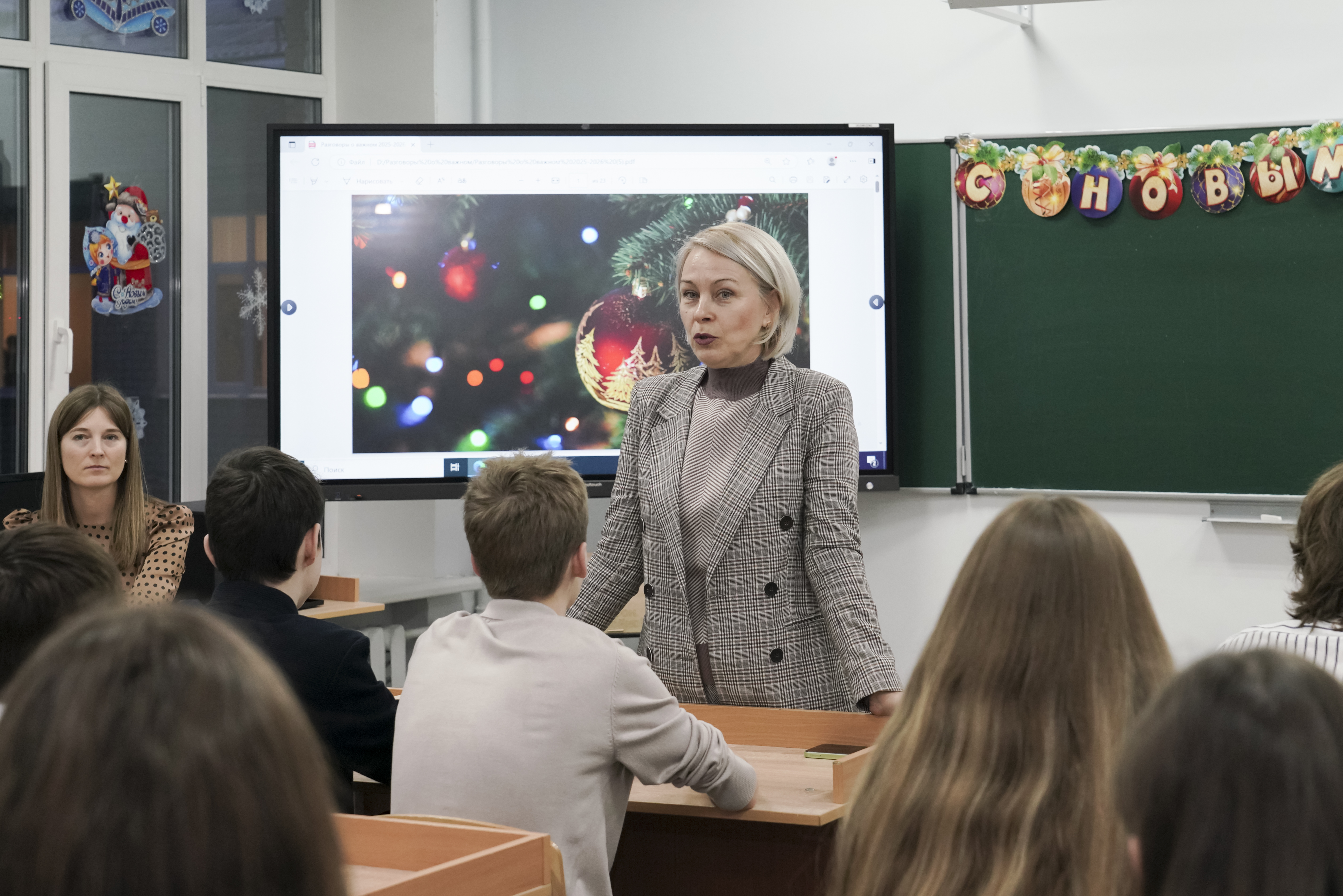 О культурных ценностях и традициях благотворительности на примере фестиваля «Горьковская Ёлка» рассказала старшеклассникам школы №175 директор городского департамента культуры Светлана Гуляева на уроке «Разговоры о важном».
