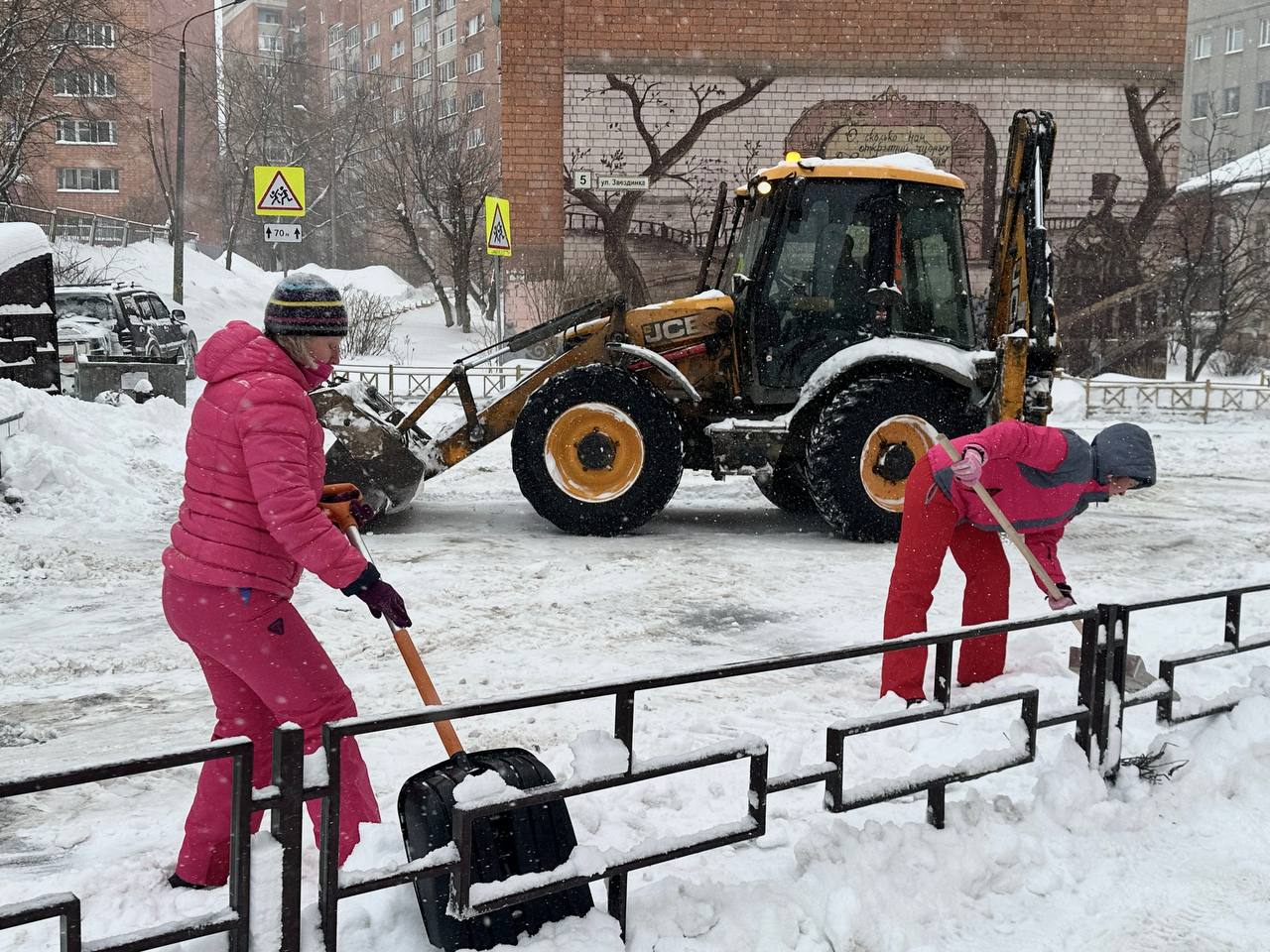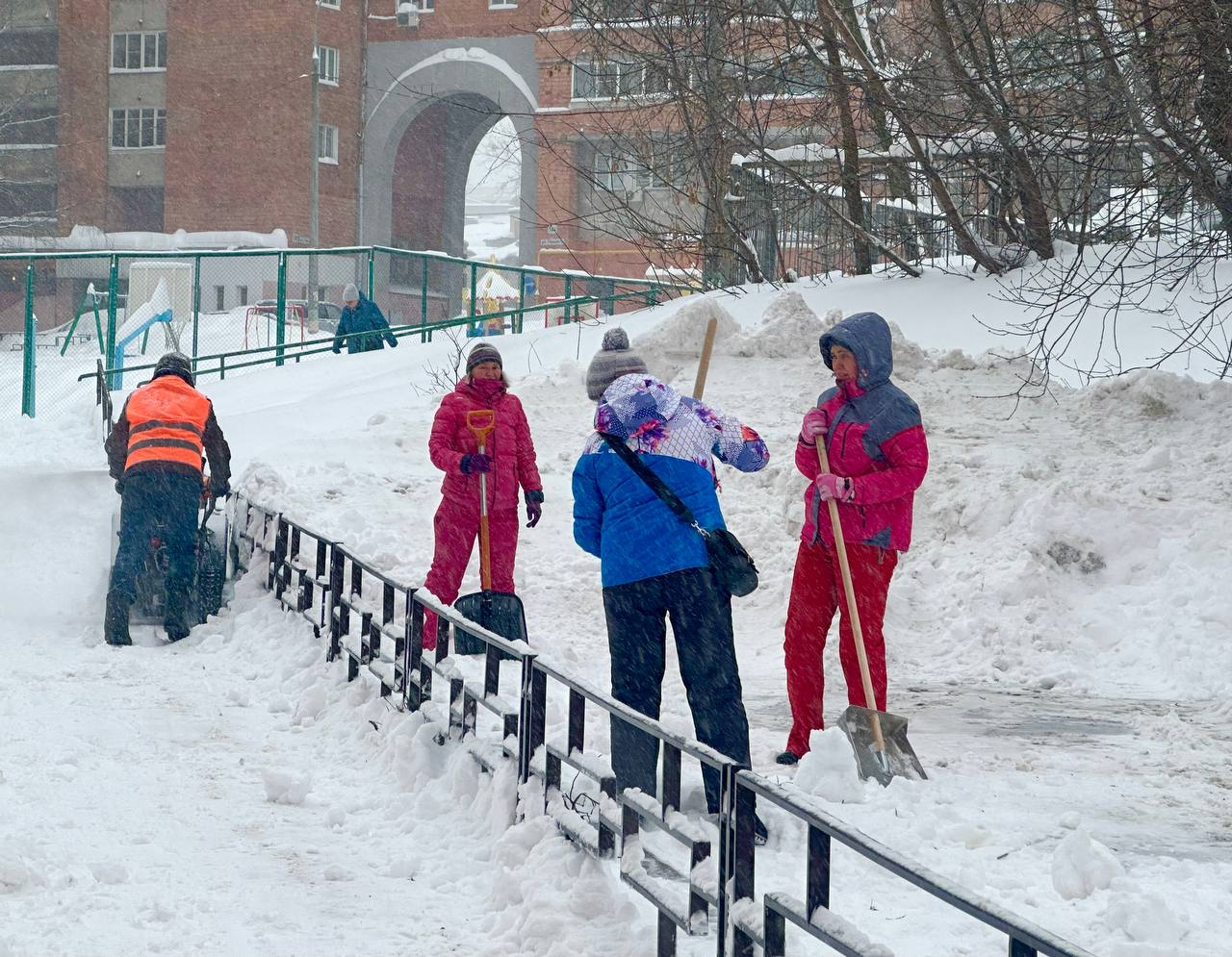 Две местные жительницы Елена и Татьяна рассказали, что рады большому количеству снега и чистят его с удовольствием, отмечают, что это давняя традиция их дома - собираться и на субботники, и на праздники: «Захотелось снег почистить. Такие ощущения прекрасные! Мы сегодня познакомились, пока снег чистили, хотя живём рядом уже давно. Это наш дом, наша парковка, наш снег, наше всё. Поэтому мы с удовольствием, с энтузиазмом чистим снег. Мы любим субботники. У нас так принято».
