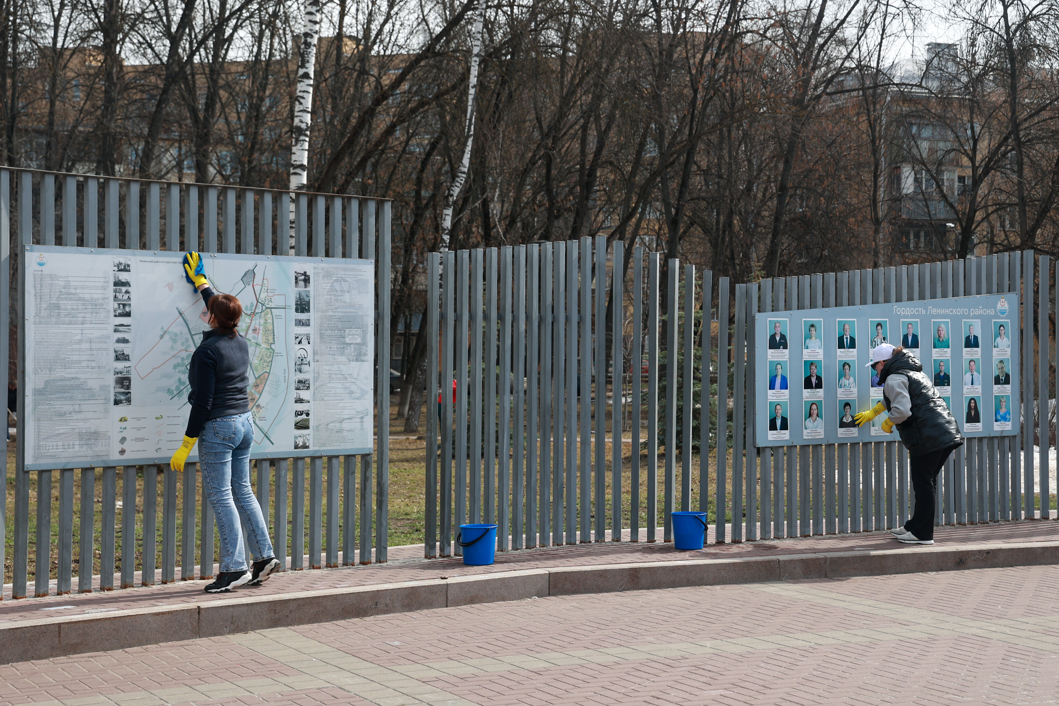 Главы районных администраций лично контролируют ход работ по благоустройству, ежедневно проверяя подведомственные территории. Так, глава администрации Ленинского района Сергей Лукоянов сам принял участие в очередном субботнике. «Работа ведется по всем направлениям: задействованы дорожные службы, которые круглосуточно чистят прибордюрные полосы, тротуары, остановки, а также домоуправляющие компании – они наводят чистоту на дворовых территориях. Активно нам помогают предприниматели и сотрудники предприятий: они убираются на своих территориях, собирают мусор и подметают дорожки. На отдельном контроле - детские площадки и общественные пространства. Сотрудники районной администрации уже несколько раз вышли на субботники и привели в порядок пешеходные зоны на пр. Ленина», – сказал глава администрации Ленинского района Сергей Лукоянов. В этот раз сотрудники районной администрации почистили и помыли стелу «Труженикам тыла» и доску почета «Гордость Ленинского района», а также убрались на прилегающей территории.