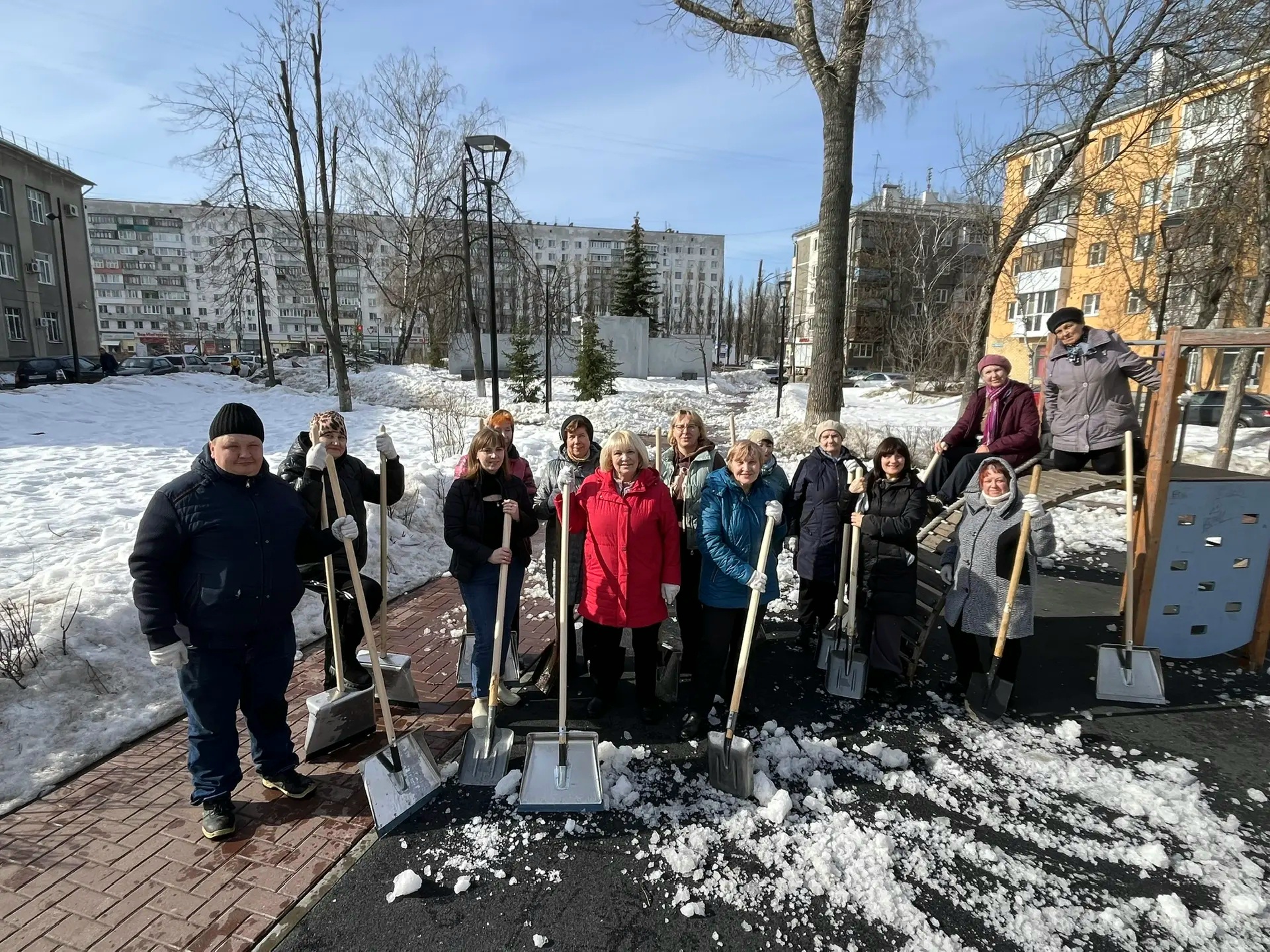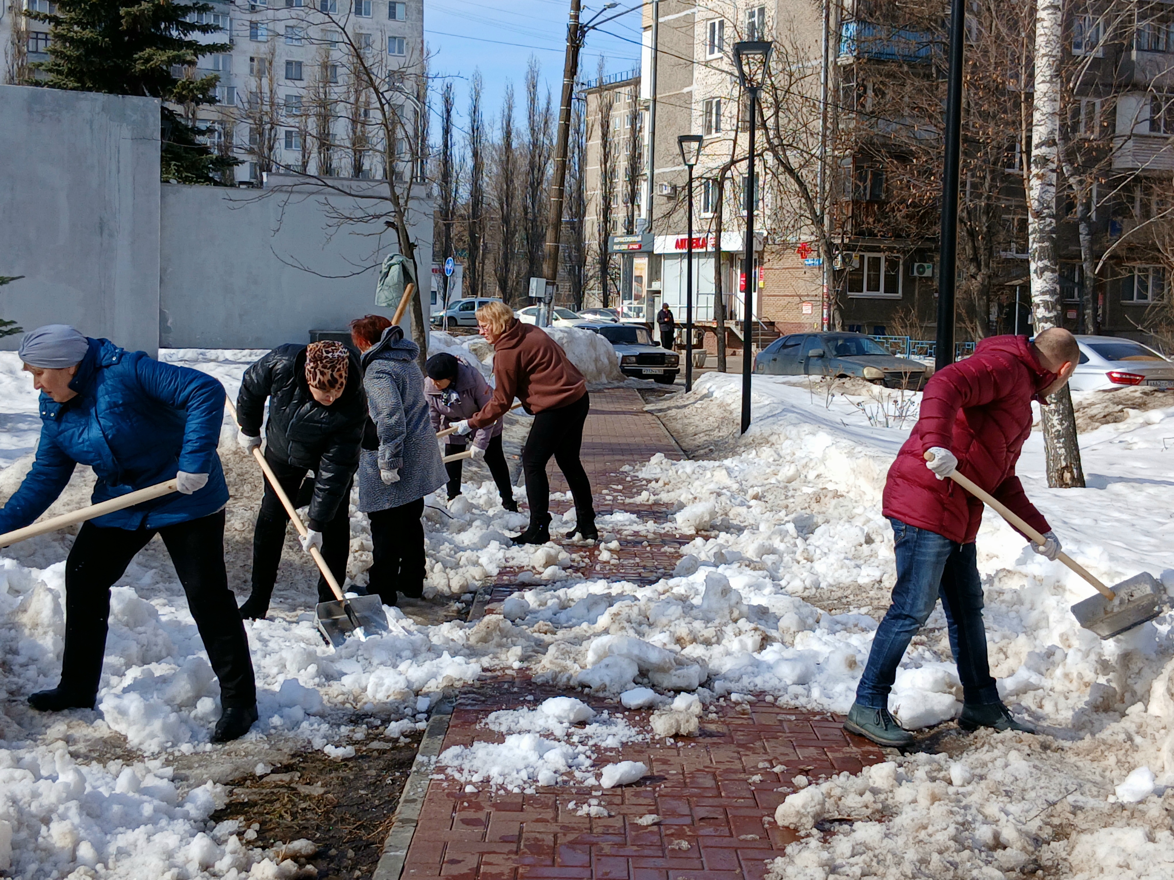 На первый в 2026 году весенний районный субботник вышли более 100 активных жителей Ленинского района. В акции приняли участие студенты, члены ТОСов, инициативные жители и сотрудники районной администрации, которые ворошили снег и собирали оттаявший мусор с газонов.