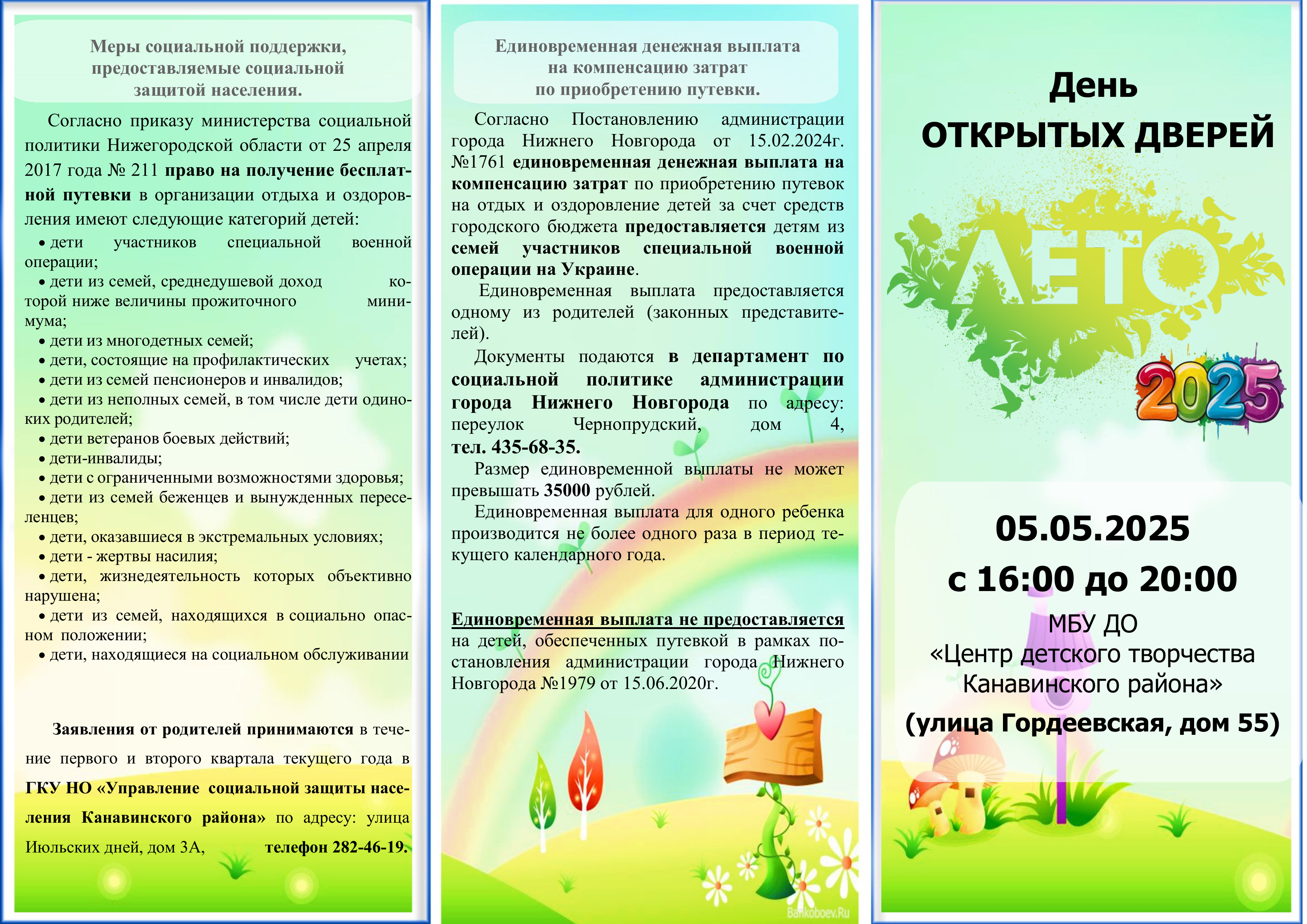 Работа площадок по пропаганде дополнительное образование детей и информирования детей и родителей/законных представителей о дополнительных общеразвивающих программах, реализуемых в МБУ ДО ЦДТ Канавинского района. |